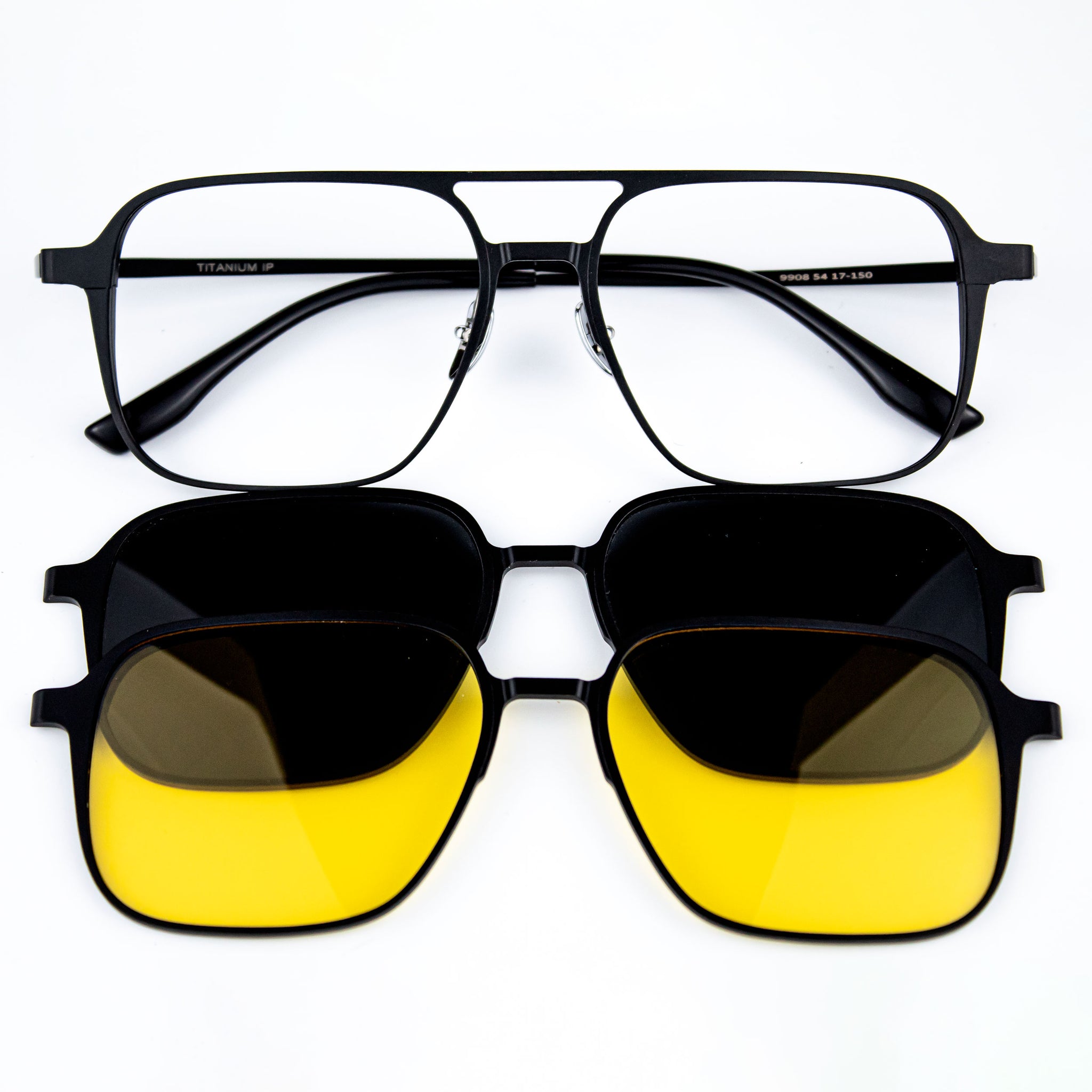 ✅ Incluye 2 sobrelentes de titanio con la tecnologia polarizada en color negro y amarillo.